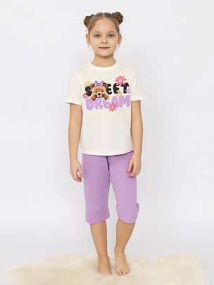 Пижама для девочки (футболка, бриджи) экрю