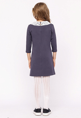 Платье для девочки с втачными рукавами 3/4. Воротник вязанный, отстегивающийся. Спинка со средним швом, в верхней части которого обработана застежка на пуговку.
