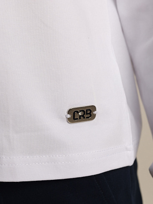 Джемпер для девочки с длинными рукавами и отложным воротником из кулирки, свободного силуэта. Рукава объемные, со спущенным плечом, снизу манжет из кулирки. Спинка с вырезом-капелькой и застёжкой на пуговицу-бусину с петлёй.