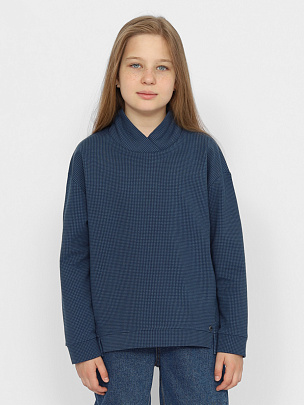 Джемпер для девочки с модным, трендовым принтом в стиле граффити (надпись: "Мой прекрасный цветок"). Крой оверсайз с заниженной линией плеча не сковывает движения, позволяя ребенку быть активным. Модель дополнена круглым вырезом горловины и длинными рукавами. Воротник, манжеты и пояс выполнены из полотна с эластаном.
