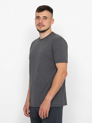 Футболка мужская с коротким рукавом. Вырез горловины круглый, обработан притачной планкой из рибаны с эластаном.
